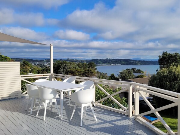 Perched above the bay, this peaceful haven in Snells Beach offers a spacious retreat. With unlimited WiFi and Netflix, unwind upstairs in the huge master bedroom or enjoy stunning views from the private mezzanine. A well-equipped kitchen with a Nespresso coffee machine is perfect for culinary exploration.