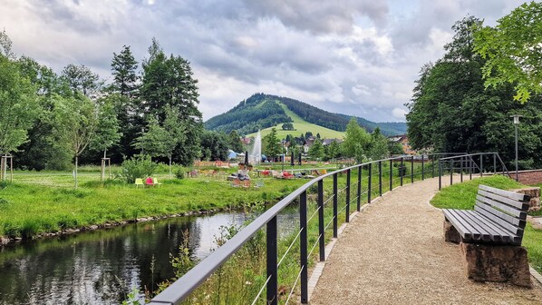Baiersbronn offers a variety of activities for nature lovers and gourmets. Explore the beautiful surroundings on foot or by bike, for example on the popular Tour de Murg. For culinary experiences, there are several Michelin-starred restaurants nearby. The flat is also ideally located, about a 9-minute walk from Baiersbronn Schule station or 11 minutes from Baiersbronn station, with direct train connections to Karlsruhe and outlet shopping opportunities.