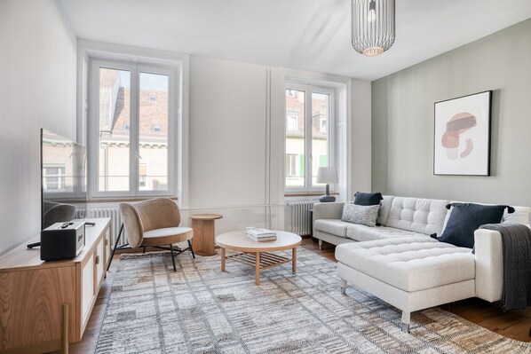 As with any Blueground apartment, you’ll find a thoughtfully designed space complete with beautiful furniture and a fully equipped kitchen in this two bedroom property. And, thanks to our superior quality mattresses, luxury linens, and towels, you can relax knowing you’ll always feel comfortably at home. When you’re ready for some fun, you can take in the Basel vibes or bring the entertainment to you with the premium wireless speaker or smart TV.