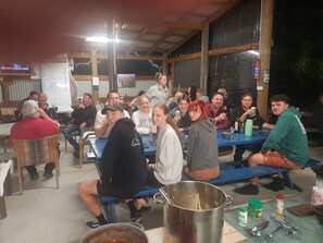 يُسمح بإقامة الحفلات والفعاليات (بما في ذلك فعاليات التجمعات العائلية، وحفلات عيد الميلاد، وحفلات الزفاف) في موقع المنشأة، ويكون الحد الأقصى لعدد الحضور 45