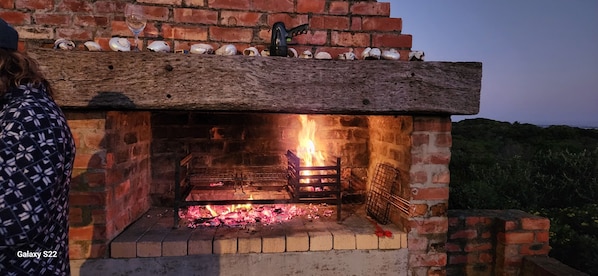 FULLY EQUIPPED SEA FRONT HOLIDAY HOUSE Ground floor Fireplace, Braai area