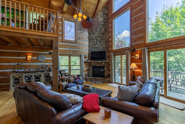 As you enter the community, you'll be greeted by the tranquil surroundings and serene wooded landscapes. Step inside and you'll find a spacious and well-appointed interior that was designed to accommodate both relaxation and entertainment. The heart of this vacation rental is the inviting living area, where plush sofas and a stone fireplace beckon you to unwind after a day of adventure in the mountains. Large windows flood the room with natural light, framing stunning views of the surrounding woods. The fully-equipped kitchen is a haven for culinary enthusiasts, featuring modern appliances, ample counter space, and all the necessary cookware and utensils. Prepare delicious meals and gather with your loved ones in the adjacent dining area, where you can share stories of the day's adventures. The four cozy bedrooms offer a peaceful night's sleep for the whole family, with comfortable furnishings and rustic décor that reflect the natural beauty of Boone. Wake up to the gentle sounds of nature and step outside onto the spacious deck to savor your morning coffee while breathing in the crisp mountain air.