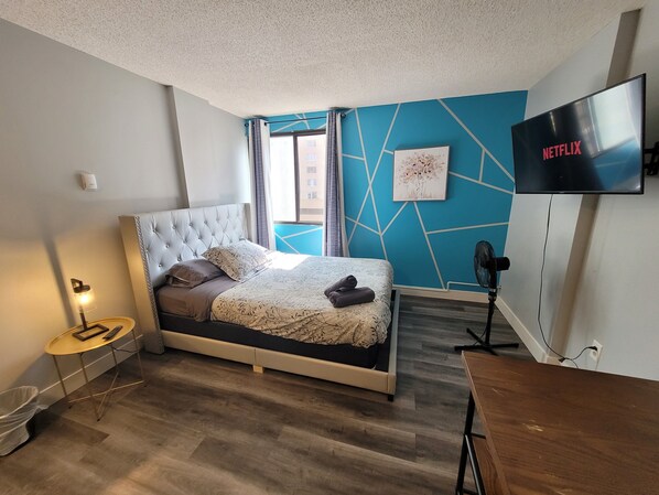 Stay in the heart of Calgary's urban core at our cozy, affordable studio apartment. Located in the downtown west end, this charming space offers stunning urban skyline views and close proximity to the Bow River for scenic walks and biking. With easy access to public transit and top attractions in the city center, you'll enjoy a convenient stay. Perfect for budget-conscious travelers seeking comfortable and affordable accommodation while exploring everything Calgary has to offer!