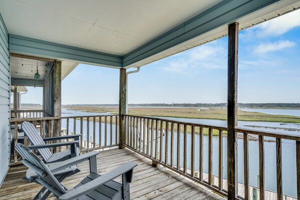 You’ll love kicking back and relaxing in the sunny Living Area with Free WiFi, Flat Screen Streaming TV, and absolutely spectacular Views of the Assateague Channel and Lighthouse. Step outside onto your Waterfront Deck and take in that salty, sweet sea breeze - literally just steps away! Whether you enjoy fishing and crabbing from the Pier, or just relaxing with a cocktail, you’ll be amazed how close to the water’s edge you really are!