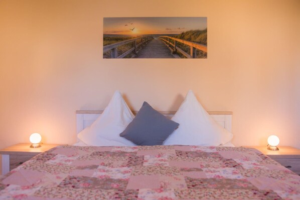 "Herring Gull" - arrive and enjoy! This offers you our refurbished, modernized and spacious 50sqm apartment. It is located in the 1. OG of a 3-party residential building with parking right outside the door and has a large balcony facing south, which invites you to cozy hours. You can expect a charming holiday accommodation with a spacious living room, TV wall and comfortable living room to dream. The separate kitchen is a highlight in a small space and offers everything you need for your holiday. The bright bedroom has a double bed (180/200 cm), there is also the possibility to set up a travel cot there. The spacious wardrobe with mirror provides enough space for the holiday luggage. The daylight bath shines in new splendor with shower, toilet and vanity. A small dog may be brought on request. Upon request, a travel cot and a high chair can be provided.