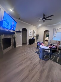 Our stay lasted from November 19 to 24, during which we attended our daughter's wedding at The Cotton Mill. Given the Vrbo's convenient location, I considered it an excellent rental choice. The rooms were spacious enough for our group of six, and the decor was tasteful. While the home was clean, the cleaning service needs to improve, specifically regarding glass surfaces and light fixtures. The light fixtures above the island were dusty, the TV was smeared, and the home requires some upkeep. The kitchen baseboards are scratched and peeling, and the backyard's trampoline has a damaged spring cover. The back door lacks a spring return, causing it to swing open widely. Moreover, the property's landscaping appears to be neglected, aside from regular lawn mowing, as weeds are prevalent and hedges are overgrown. Regarding the neighborhood, I departed early to prepare for the wedding, while my family left later. At approximately 1 pm, they witnessed a group of 20 males in an open field, one of whom was armed with an AK47 rifle and firing at an unknown target. Furthermore, upon turning the corner, they saw two males dressed in black, with skull caps and handkerchiefs covering their faces, approaching a residence. My family was fearful for their safety and promptly proceeded to the venue.Our residence was inundated with crickets on a daily basis.guest bathrooms shower curtain only reached the top of the tub, resulting in a wet rug. And dead crickets under the rug!