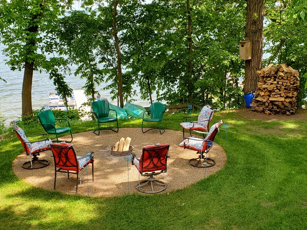 Also included are 2 kayaks, a paddle boat, assorted water toys, lily pad and floating air mattresses. Families with young children love the shallow shoreline (with sandy bottom) for swimming, water toys included. There is a large fire pit overlooking the lake and firewood is included. A huge, screened in deck on the home (with plenty of comfortable seating) overlooks the lake.