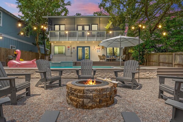 The Escapes by Dave presents The Beach Escape - Destin, a professionally designed home that is a 5-minute walk to the beach and a 2-minute drive to Destin Commons. After your day on the beach, rinse off at the backyard outdoor shower and take a dip in the newly constructed LED-lit, 29ft x 14ft heated saltwater pool and 8ft x 8ft spa. Relax on the in-pool shelf loungers while the children play in the shaded sandbox. Enjoy the Breeo Smokeless fire pit while lounging in our comfortable, oversized adirondack chairs, while making S’Mores, sharing stories, and making memories!