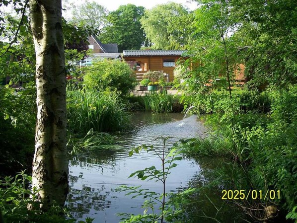 Schön, ruhiges Holzhaus gelegen im Garten der sehr netten Herbergswirtin. Kurzer Fussweg über den Damm an die Jümme zum Steg. Geschäfte und Gastwirtschaft in der Nähe. Man ist schnell mit dem Auto in Leer, Emden und Papenburg, Für unsere Zwecke genau das Richtige