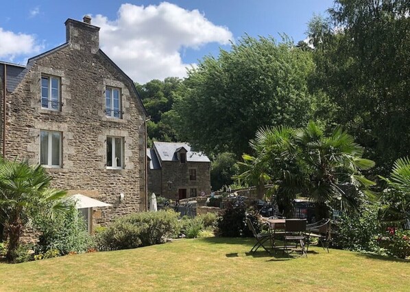 Built in 1814, Val Rive's setting is very picturesque – directly overlooking the medieval toll bridge which leads up to the 9th century Abbey and ancient ruined Chateau of Léhon. Indeed, Léhon has the status of ‘Petite Cité de Caractère' (small town of character) and visitors fall in love with it, returning year after year to this charming village.