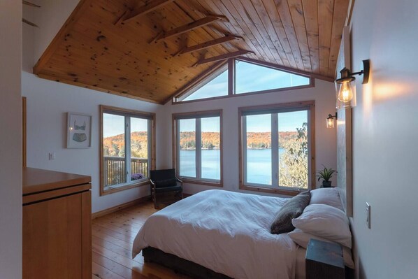 This is the cottage where you can finally escape the pressures of your everyday life, completely settle in to relax, disconnect, and exhale your worries away at your own very private and serene waterfront getaway. Traditional yet elevated, our rustic-luxury H2H Cottage Co Chalet inspired cottage on Kennisis Lake has Jaw-dropping Panoramic Views that will take your breath away, the cottage is bright & airy, cozy and welcoming, immaculately sparkling clean, and is perfectly positioned for mind-blowing lake and forest views during the day, and unobstructed stargazing at night. The cottage is on an extremely private and fenced & gated 1/2 acre lot.