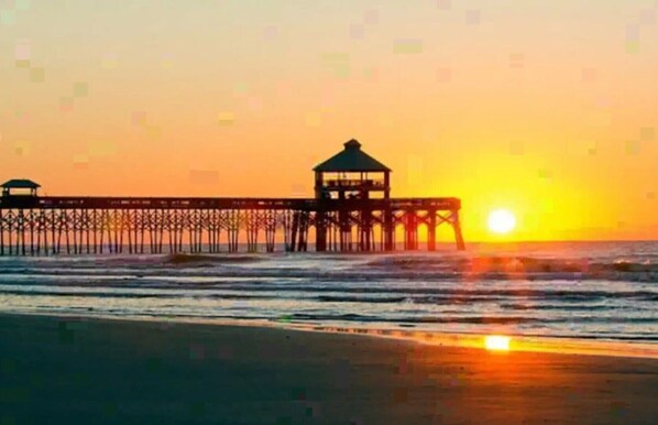 Let’s not forget THE BEACH…which is probably why you’re here after all. It’s just a short 2 minute walk down the street to the most well-appointed beach access on Folly. The County maintains showers and fully air conditioned bathrooms here-one of only 3 facilities like it on the island. The dunes are soft, the sand sublime, and the Atlantic beckons. Summertime ocean temps peak near 88 degrees and the water is still 70-80 degrees in October—which is why we love living here, and why YOU will love vacationing here . The iconic Folly Beach pier is in full view captivating the horizon . If you are an early bird grab your camera for some amazing sunrise shots from your beach access.