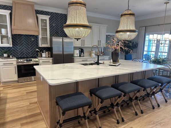 Gorgeous Waterfront Views on the Stunning Intracoastal Waterway. Watch the Boats go by or drive your own watercraft to your own private beach! Waterway house is the perfect getaway for a multi family, wonderful friend getaway , golf trip or couple's vacation. The views are spectacular from any room in the home. The home also comes with an expansive pier and dock area with your own private boat ramp. Dock area also has a floating dock with easy storage for your watercraft. House is also equipped with kayak, fishing poles and outdoor ping pong table for your enjoyment. Home also comes with a Pynamite Misting Mosquito System to help with Insect control. The Mosquito system is Non-hazardous, odorless, non-fuming, non-staining, & biodegradable. Whether you like to fish, kayak or just relax, the waterway house has it all! The Space: The Waterway home has been completely remodeled Jan/2025. This home will host 16 guests comfortably. Rest easy with 2 Master bedrooms each featuring King beds with luxurious mattresses to ensure a good nightssleep. Each of the 4 bedrooms have there own private bathroom. Bedroom 3 has 2 queen beds with dreamy mattresses. Bedroom 4 will sleep 8 people, 2 queen beds, and 4 twin bunk beds. This bedroom also has a private bath with a shower/tub combo and a large walk-in shower. All bedrooms are equipped with flat-screen TV’s. A full size washer and dryer add to convenience of your stay. Enjoy the panoramic waterway sitting in the Bedswing from the large screened in porch off back. A large fully equipped kitchen boasts granite counters and stainless steel appliances ensuring seamless cooking experience. The living area is spacious with expansive leather sectional with 65 inch large screen smart TV. Outdoor Bliss: As of May 2025, the Waterway House will boast a new pool with a large tanning ledge to enjoy all the sites of the waterway living. A well equipped outdoor kitchen area right at the pool area with a large flat screen TV will enhance all of the outdoor living experience. Also, outdoor ping pong, corn hole boards or kayaking are among the many activities you can enjoy! 1. Minimum renter age 25. Guest age 25 or older must be staying on property at all times. 2. No smoking. Guests must pick up any cigarette butts if smoking outdoors. 3. Check-in is 4:00 pm on and Check-out is 10:00 am. 4. No pets allowed. Violiation will result in immediate eviction without refund and additional charges will be applied.