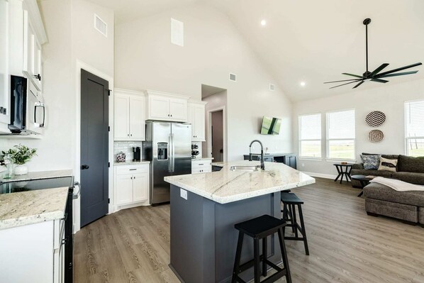 The beautiful 4BR 3BA will comfortably fit your large family. The new home was completed in 2024. Retreat to the deck to watch the sunrise or enjoy yourself during golden hour. This home is great for a family vacation.