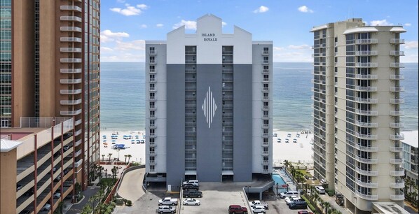 Island Royale offers a heated inside/outside pool, two hot tubs, kiddie pool with mushroom fountain, sauna, steam room, and exercise room overlooking the beach. There are grilling stations located on the east end of the building.