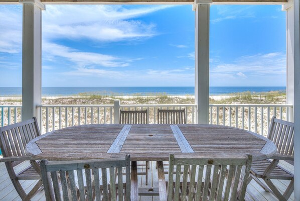 OMG. The BEST wide open beach area right behind your home, and those views from all the BIG decks? Oh so awesome! Beachfront. Yeah, THIS is beachfront!