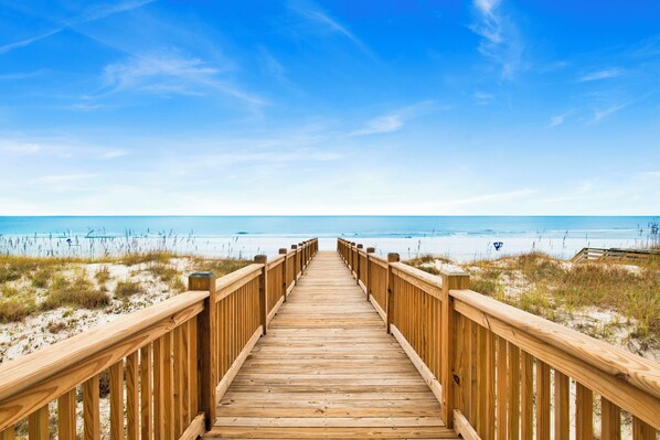 The beach access was great- there was hardly anyone near us. There are bathrooms in each bedroom which was great! The only recommendations I have are more trash cans would be helpful and the oven was difficult to use. Other than that it was amazing!