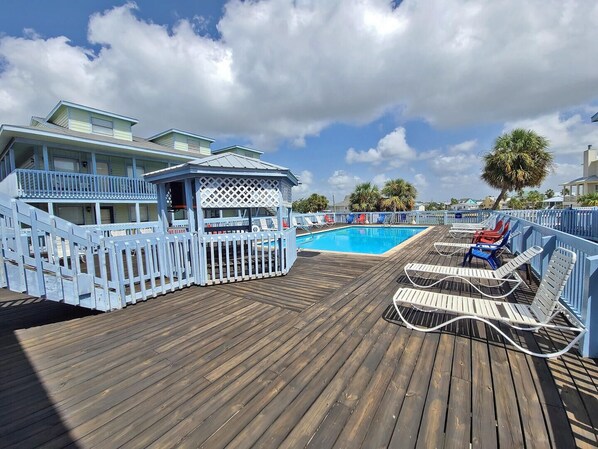 This centrally located property offers charcoal grills at a first come first serve basis. There is an elevated community pool and a large sundeck to catch a tan. The balcony right outside your door allows you to keep up with all the happenings around you.