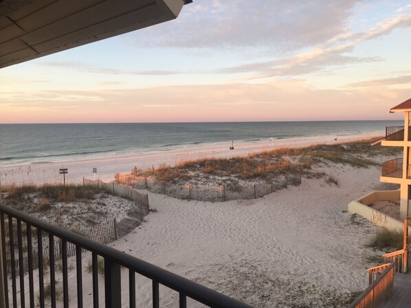 Unit 39. Great, two-story townhouse condominiums on the beach! No one above you or below you. The only 'TRUE LOW-DENSITY COMPLEX' on the Gulf! Only 40 units and 250 feet of beach front! No high rise next to you on either side. No obstructed views. Great Family Complex! No elevators to wait on! No long flights of stairs! Ocean view from EVERY room! Two balconies with nice metal bar stool chairs. Has a private garage (two cars) under unit. No long walk from parking lot. The private garage is wonderful for use as a barbecue and grilling patio. Grill steaks from a newer Weber grill while watching the waves break just feet away.