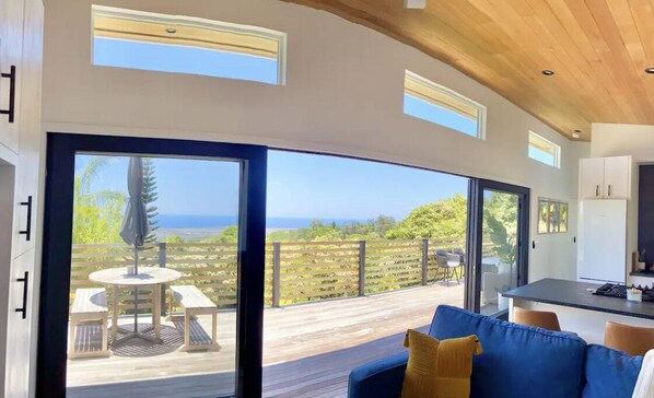Nestled in the Kona countryside, this private home on 3 acres offers a tranquil retreat. Enjoy modern comforts and take in ocean views from the spacious lanai.