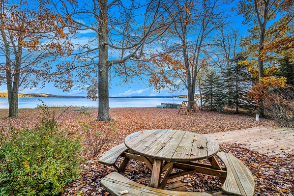 Set on the shores of Platte Lake, this home is for the guests that want to spend a lot of time near the water - and want a comfortable place to rest once they've swum their heart out! With a lakeside deck and a dock that includes a bench, swimmers and boaters alike will enjoy the safe havens. When the sun goes down, it's time to cook your catch on the home's private gas grill. Afterward, it's time to light up the permanent firepit near the beach and watch the stars come out.