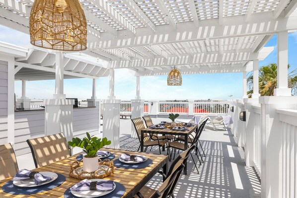 Outdoor dining - 1 Block to Beach, Newly Renovated 6BDR w/ Rooftop Views | Sand Dune by AvantStay (Isle Of Palms)