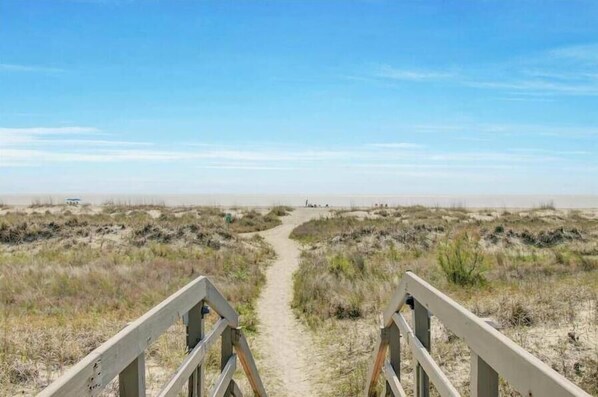 Finally, “Turtle Cove” is in the unique Wild Dunes community of Mariner’s Walk. This private community features a swim center with two swimming pools that is for the exclusive use of Mariner’s Walk guests. In addition, there is a grilling station close to the beach boardwalk that guests are welcome to use. Boardwalks connect the properties to the beach paths that meander through the dunes leading you to the ocean. Mariner’s Walk has one assigned parking space for you directly in front of the door at “Turtle Cove”.
