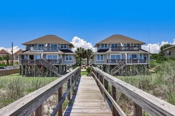 Sit on the upper or lower decks of this oceanfront property and enjoy refreshing ocean breezes. Take in stunning views of the sea by day and twinkling stars at night with beach access right outside your door, plus internet to keep you connected.