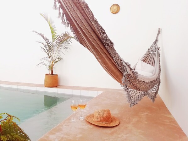 You can relax in our private swimming pool, or drink a fresh juice on your terrace surrounded by lush tropical plants. Want a refreshing shower? In addition to the indoor bathroom, we have an outdoor shower to allow you to refresh yourself while enjoying the sun