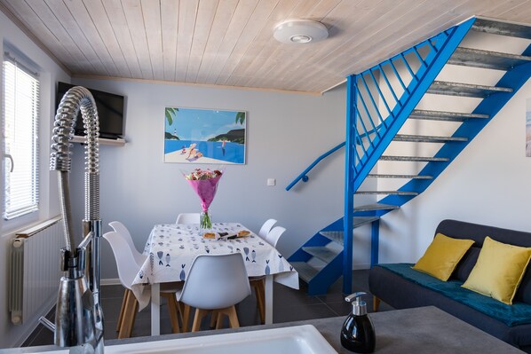 Nous avons été très agréablement surpris des équipements, tout était à disposition avec en prime, le kit d'arrivée. Décoré avec goût, ce logement (comme à la maison) est idéalement situé (à pied jusqu'au port ou au centre et/ou à vélo à disposition) et très propre et neuf. Bref, merci encore pour tout.