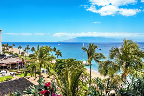 On Kaanapali Beach, this one bedroom suite offers a beautiful view of the Pacific from its private balcony. With two bathrooms and a fully equipped kitchen, you can unwind in comfort while exploring nearby restaurants and Whaler's Village Shopping Center.