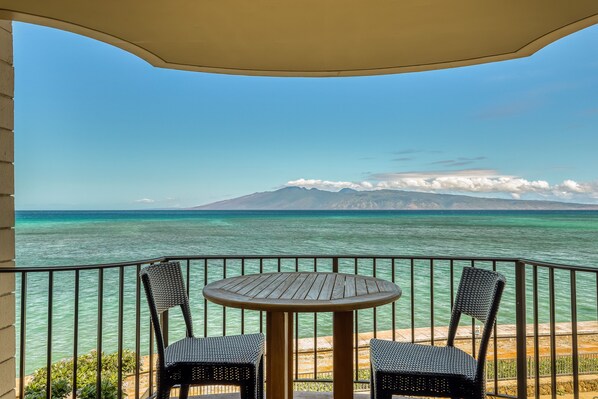 Outdoor dining - Oceanfront condo with shared pool & spectacular views from private lanai (Lahaina)