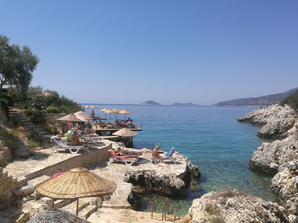 As well as the local beach and beach clubs the famous 18km Patara Beach is a 10 min drive away. Kaputas Beach, equally famous is also a 10 min drive. Both beaches and the local town of Kas, and Fethiye farther afield can be reached by bus, taxi or car.