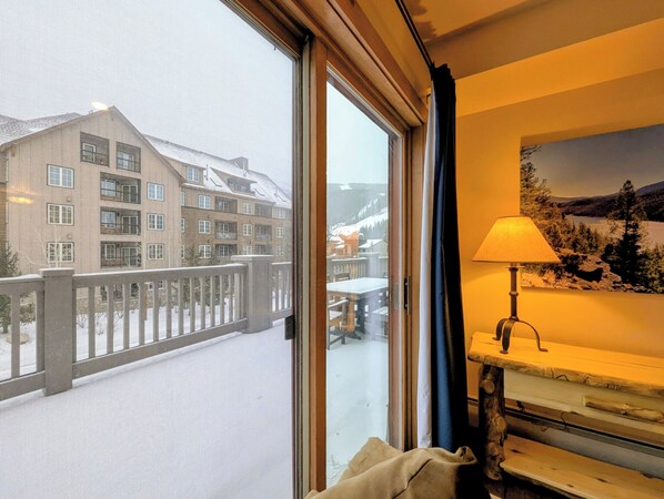 After a long day of hitting the slopes or a great bike ride up the pass, you will enjoy kicking back in here. With a nice flat screen above the fireplace, no place is cozier. The couch pulls out into a sleeper sofa and you will find a Murphy bed at the other end of the room.