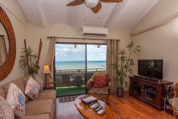 Wake up to unobstructed ocean views and watch the sunrise over Haleakala from your bedroom at this second-floor condo. With a private lanai, enjoy Maui's amazing sunsets, whales in season, or surfers across from the tennis court. Free Wireless Internet access keeps you connected.