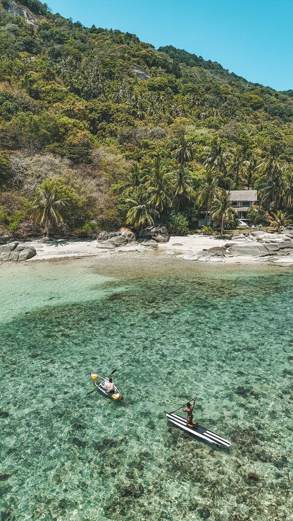 SOWK Resort offers a serene and exclusive retreat, with three private beaches and a beach bar. Your luxury pool villa awaits, complete with daily maid service, concierge assistance, and stunning breakfast on the beach until 2 pm. Enjoy snorkeling gear, stand-up paddleboards, filtered natural spring water bottles.