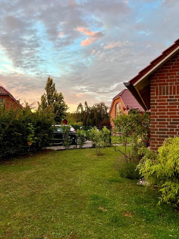 Außenbereich und Garten laden zum Verweilen ein: Eine gemütliche Terrasse, bequeme Sitzgelegenheiten und eine gepflegte Grünfläche schaffen ideale Orte zum Relaxen oder Essen im Freien. Die Ruhe rund um das Haus bot eine wunderbare Entspannung. Fliegengitter im ganzen Haus sowie eine Fliegengittertür zur Terrasse sorgen dafür, dass man auch bei geöffneten Türen ungestört frische Luft genießen kann.