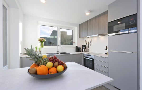 Welcome to your holiday home, which offers you as a family with children or as a small group of friends a cosy, homely ambience with Scandinavian design furnishings. Two terraces for sitting and eating in the sun, the bio-fireplace and your own sauna leave nothing to be desired. The open-plan kitchen invites you to cook and linger. There is an open-plan bedroom on the gallery.