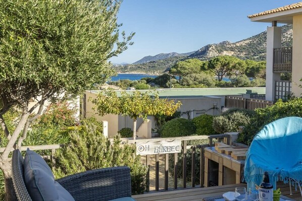Imagine yourself in the heart of Corsica, where turquoise waters meet fragrant maquis. This 65 m² apartment offers an enchanting stay, overlooking the bay of Sant'Ambroggio. Every sunset becomes a show, every sea breeze a breath of freedom.