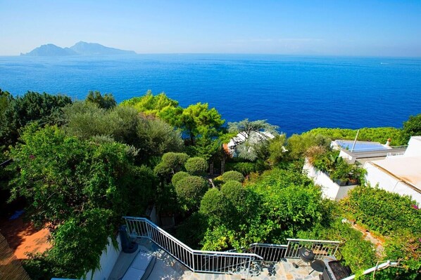 Perched on the Sorrento Peninsula, Villa Albi is an elegant haven with sea view terraces and a shared swimming pool. Enjoy alfresco dining on one of the many outdoor spaces or relax in the villa's stylish living room with a well-equipped kitchen corner.