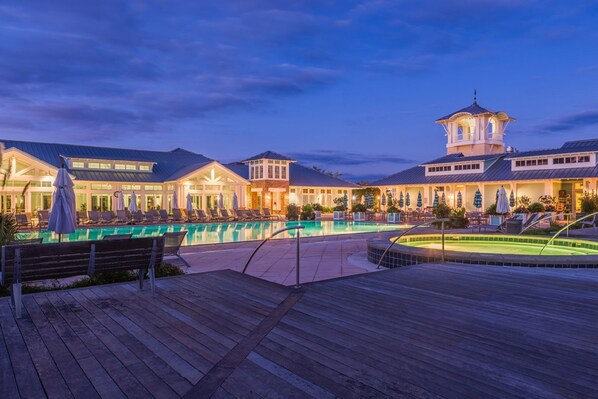 Come and experience this beautifully designer decorated 3-story villa in the Sailside community of The Peninsula. The (3) levels are ideal for multi-family vacations.