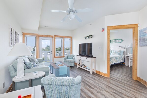 Always Included, complimentary linens and made beds! Welcome to Sweet Sound Memories, your dream OBX vacation rental! Nestled along the serene soundfront of Nags Head, this stunning condo exudes coastal charm and offers a bright, beach-inspired environment that you and your family will truly enjoy. Step inside and be greeted by the open living area, complete with plenty of seating and a flat-screen TV. With 2 bedrooms and 2.5 bathrooms, this condo is thoughtfully designed to provide comfort and convenience for you and your guests. The bedrooms are spacious and provide a peaceful haven to rest after a day of enjoying Outer Banks beaches and adventure. Each bathroom is well-appointed, ensuring everyone has their own private oasis to freshen up and prepare for the day's activities.