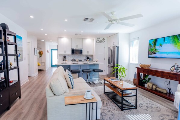 This recently remodeled cottage home, decorated in warm shades of sand, is the perfect home for your next vacation!