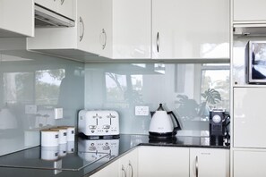 • Fully self-contained kitchen with everything you need, including a pod coffee machine (Espressotoria compatible)