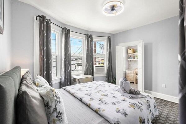 Each bedroom comes with fresh linens, pillows, and blackout curtains to help ensure a restful night's sleep.