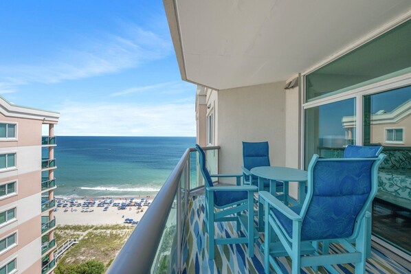 Escape to the tropical luxuries of Bluewater Keyes, a beautiful oceanfront property in North Myrtle Beach. Relax on the sundeck or by the outdoor pool and lazy river, while enjoying panoramic views of the Atlantic Ocean from your condo's sliding glass doors.