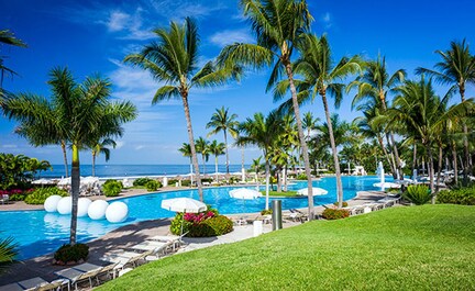 At Vidanta Mayan Palace, unwind in a spacious 2-bedroom oceanfront suite with access to an incredible water park, complete spa offerings, and golfing on site. Enjoy fine dining at Samba or light bites by the pool at Ola Mulata.