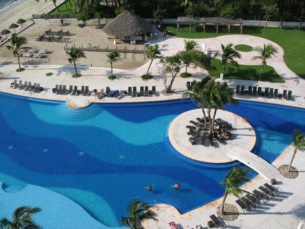 The Villa Magna Development has three condominium towers and is currently anchored by the FIESTA AMERICANA ALL INCLUSIVE HOTEL. As a guest of a condo owner, you are able to use all the common facilities of the property and hotel free of charge. If you wish, you can use the hotel restaurants 'a la carte' or purchase a 24 hour all inclusive pass. The hotel has has five restaurants, spa, bars, and numerous activities available to you.