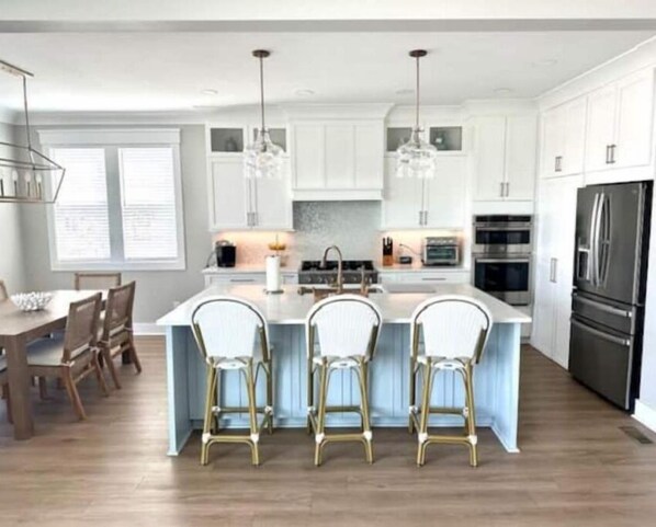 Fridge, microwave, oven, stovetop - New Canal Front Home Heated Pool Elevator Dock (Ocean Isle Beach)