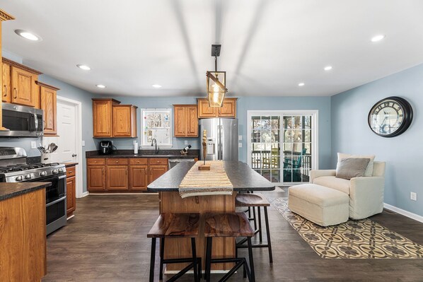 One of the home’s favorite features is the outdoor space. Guests can take advantage of the fenced-in yard for added privacy, and the beach is easily accessible by bike. Four bikes and a bike trailer are available on the property, making it simple to explore the area and enjoy the coastal surroundings at your own pace.